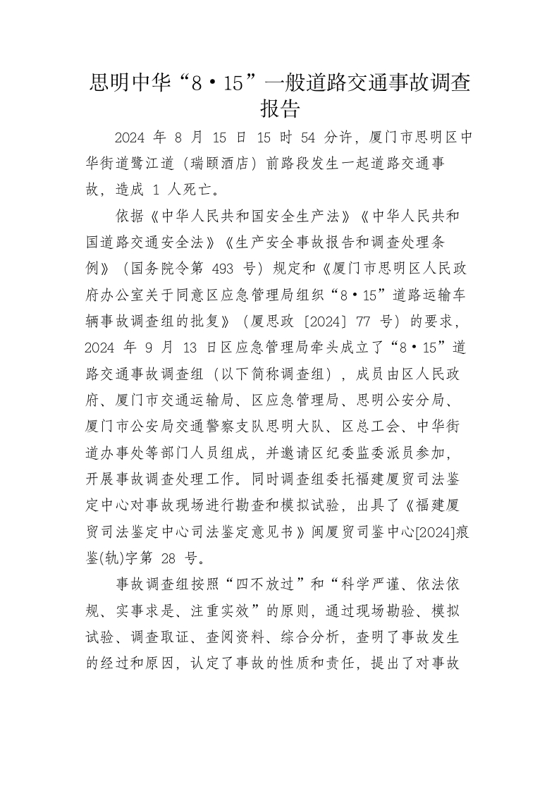 首页事故案例火灾事故思明中华815一般道路交通事故调查报告