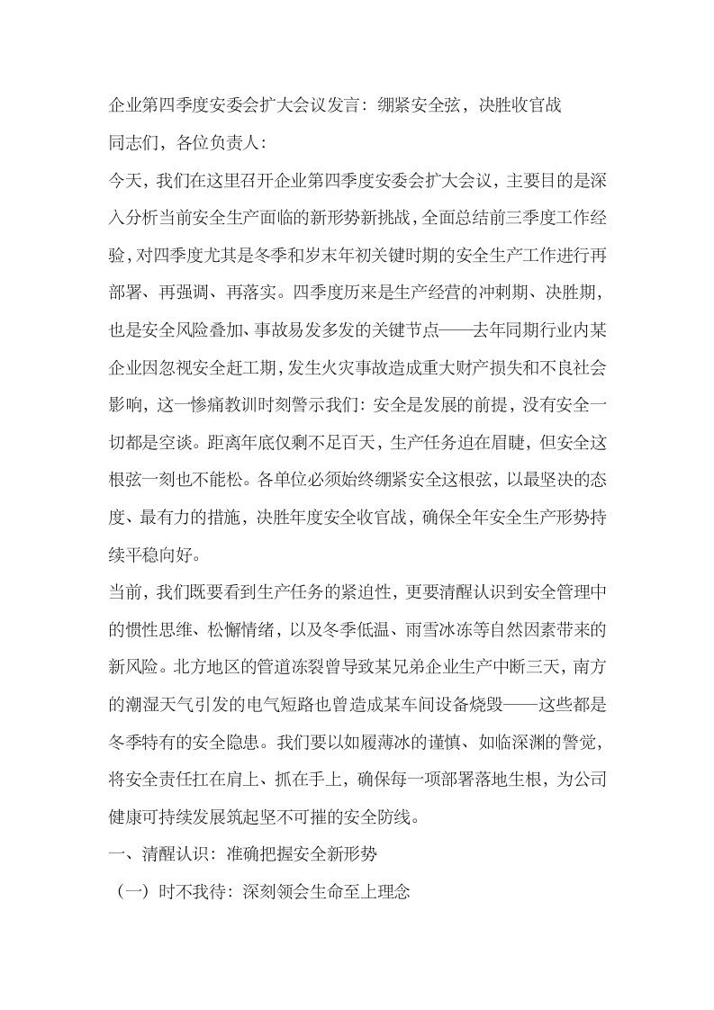 企业第四季度安委会扩大会议发言:绷紧安全弦,决胜收官战