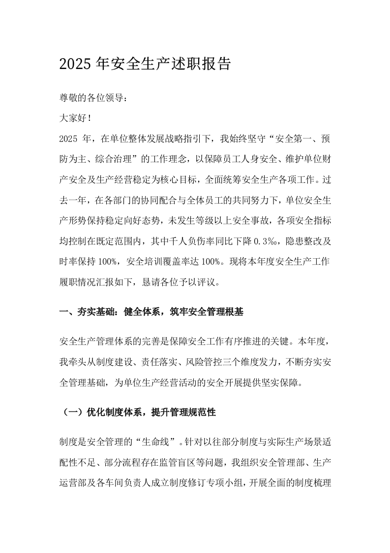 2025年安全生产述职报告