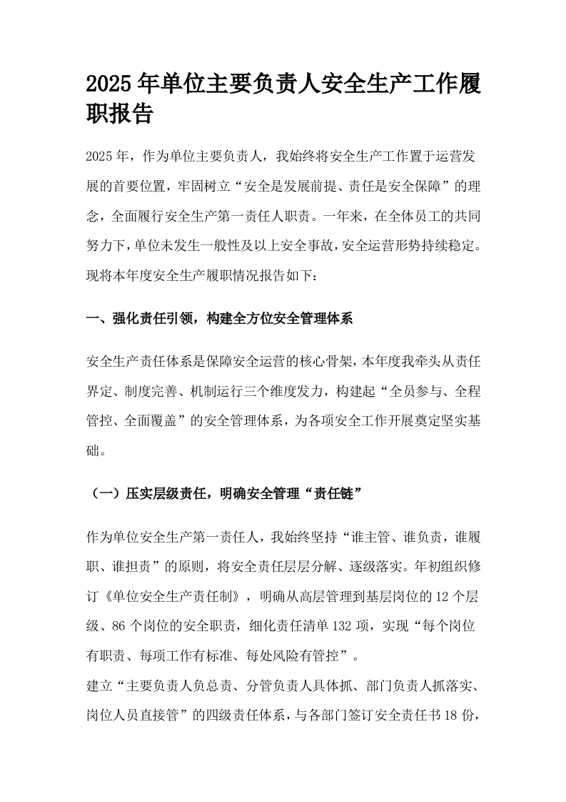首页安全文档综合2025年单位主要负责人安全生产工作履职报告