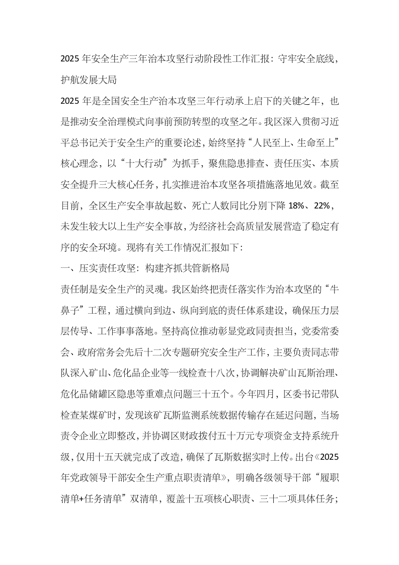 2025年安全生产三年治本攻坚行动阶段性工作汇报:守牢安全底线,护航发展大局