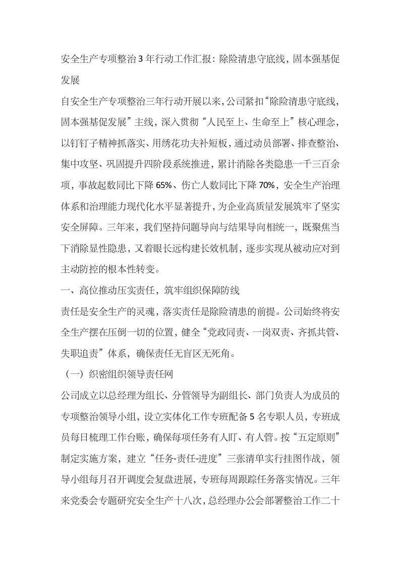 安全生产专项整治3年行动工作汇报:除险清患守底线,固本强基促发展