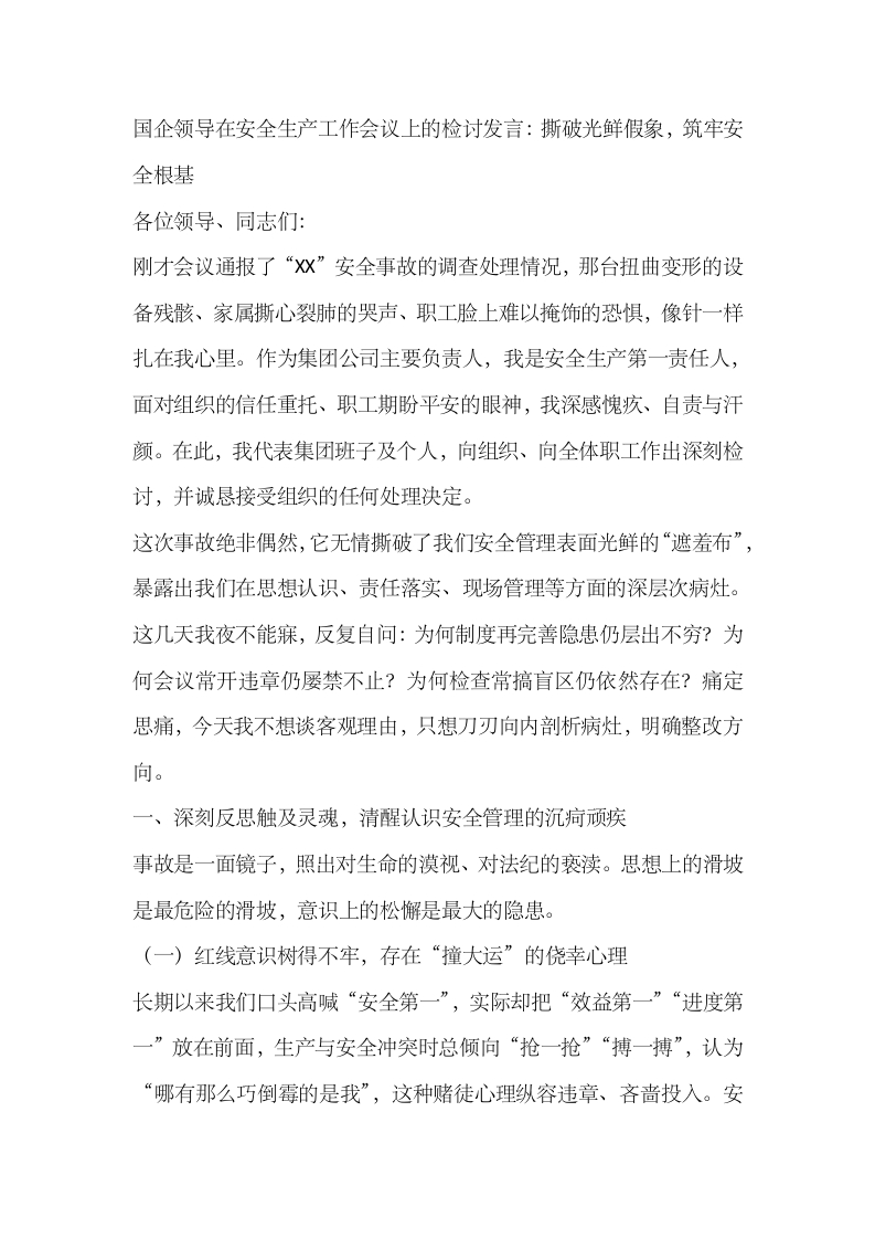 首页安全文档综合国企领导在安全生产工作会议上的检讨发言:撕破光鲜假象,筑牢安全根基