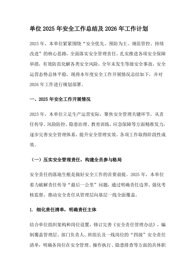 首页安全文档综合单位2025年安全工作总结及2026年工作计划