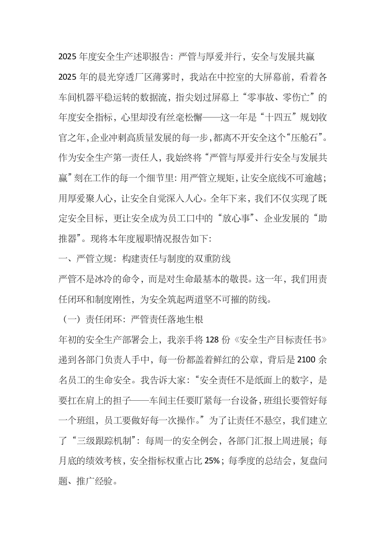 首页安全文档综合2025年度安全生产述职报告:严管与厚爱并行,安全与发展共赢