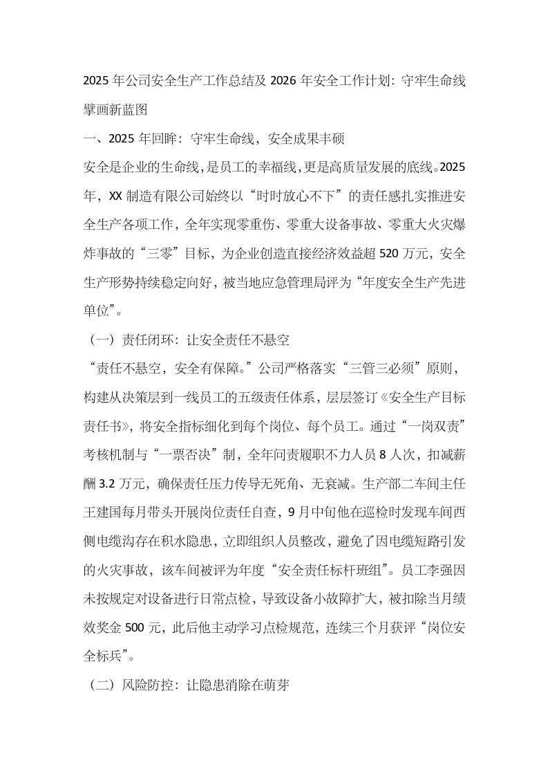 2025年公司安全生产工作总结及2026年安全工作计划:守牢生命线 擘画新蓝图
