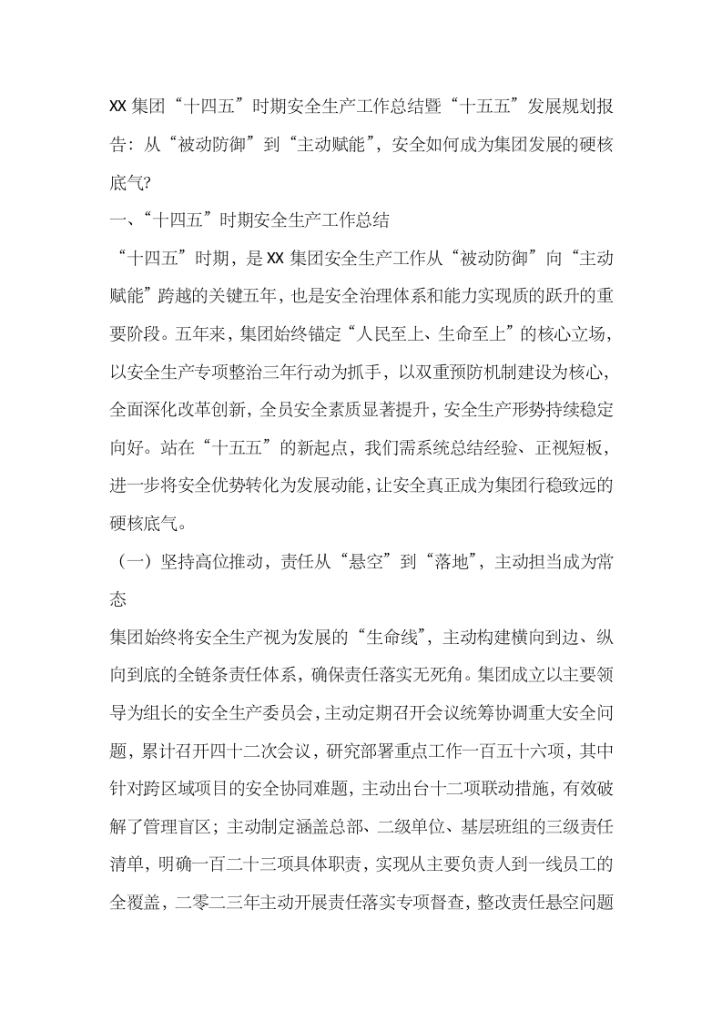 XX集团“十四五”时期安全生产工作总结暨“十五五”发展规划报告:从“被动防御”到“主动赋能”,安全如何成为集团发展的硬核底气?