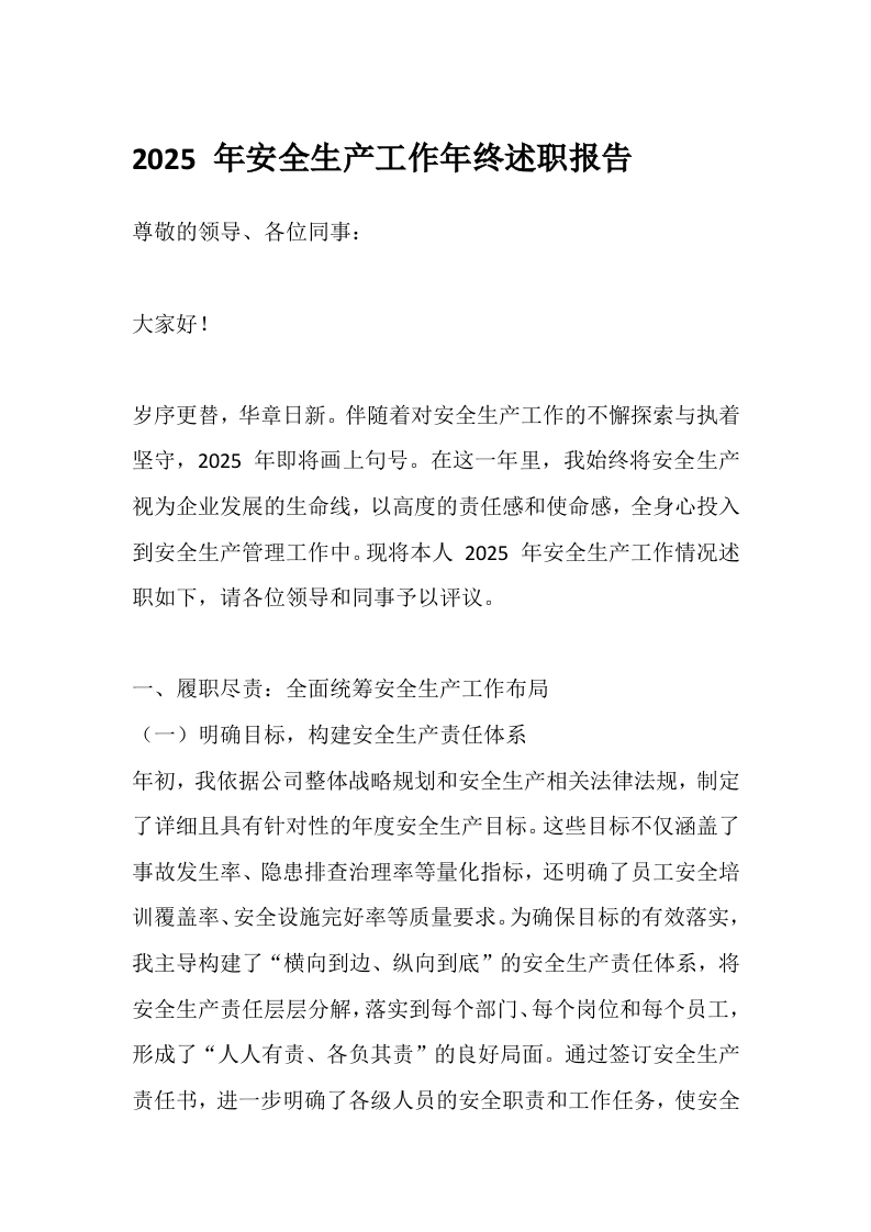 2025 年安全生产工作年终述职报告